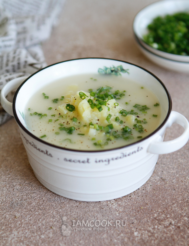Картофельный суп на курином бульоне готов. Как видите, время на его приготовление мы потратили совсем немного, и вкусный сытный обед на столе.