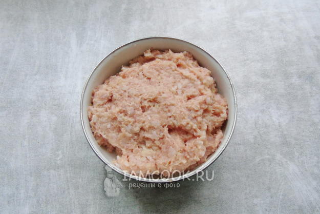 Пропустите через мясорубку рыбное филе, репчатый лук и отжатый от воды батон.