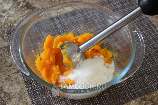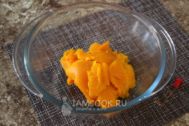 За это время намутите начинку. Для этого перемешайте тыквенное пюре с сахаром и пищевым ароматизатором амаретто. Их количество может варьироваться на ваш вкус.