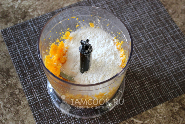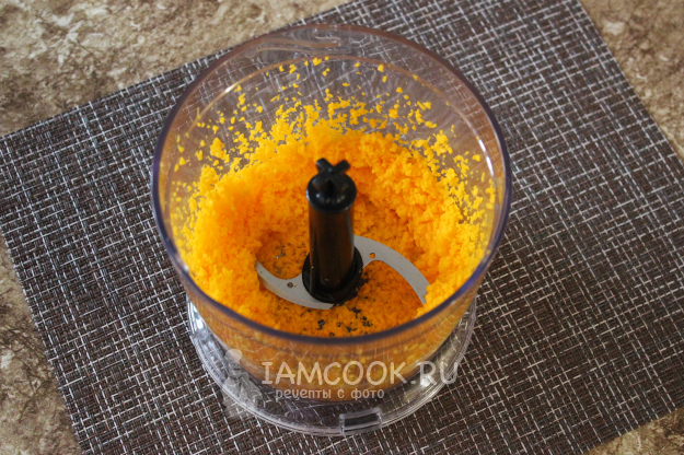Для основы кусочки сырой тыквы измельчите на терке или в чаше блендера.