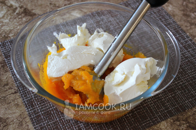Затем перемешайте это ароматное тыквенное пюре с маскарпоне и(или) рикоттой.