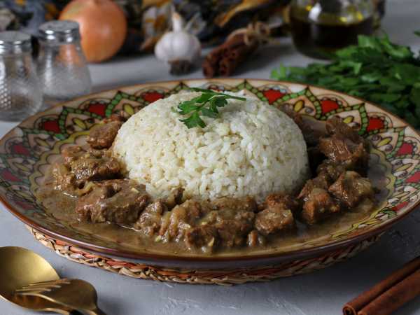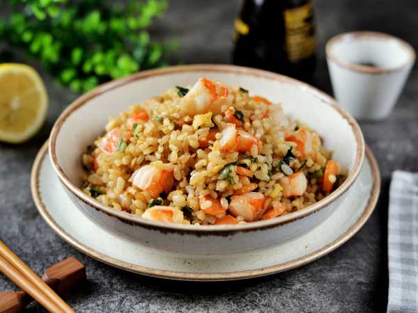 Соберите ингредиенты для приготовления карри с креветками и рисом.