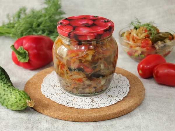 Охотничий салат без стерилизации на зиму готов. Хранить его желательно в прохладном тёмном месте.