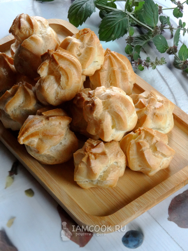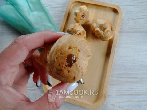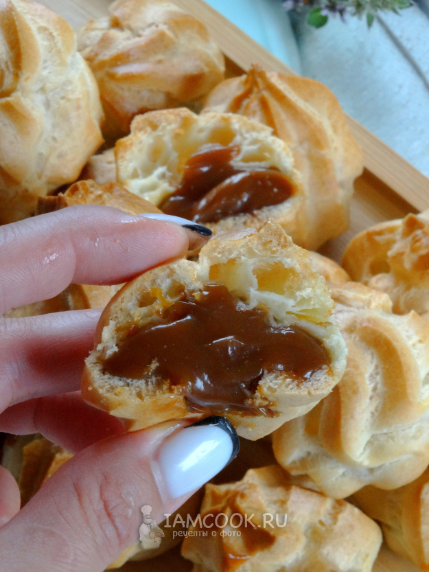 Профитроли с вареной сгущенкой готовим из простых ингредиентов.
