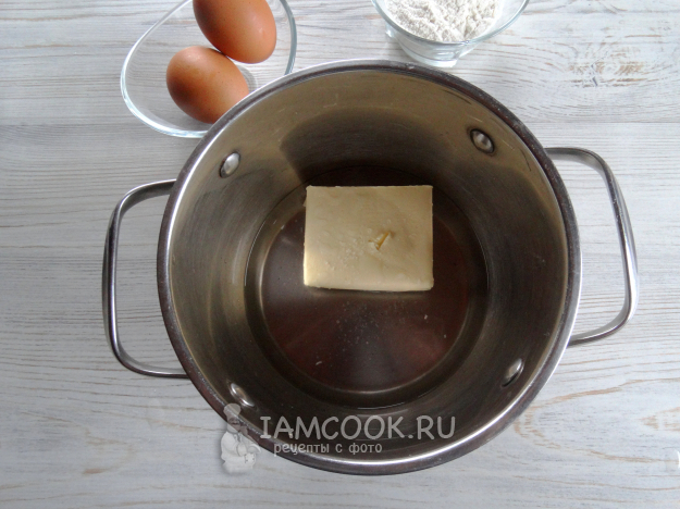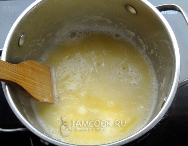 Поставить кастрюлю на плиту на средний огонь. Дождаться, когда масло полностью растопится.