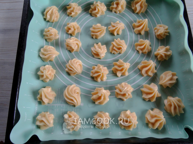Отсадить небольшие изделия на противень с бумагой для выпечки или силиконовым ковриком.