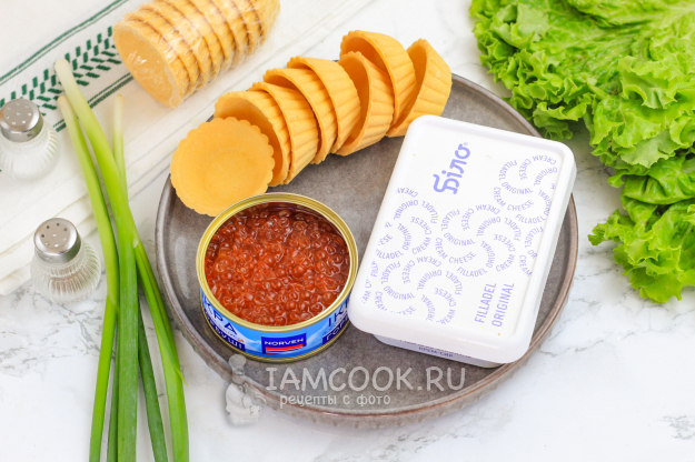 Продукты для приготовления тарталеток с икрой и сливочным сыром - перед вами!