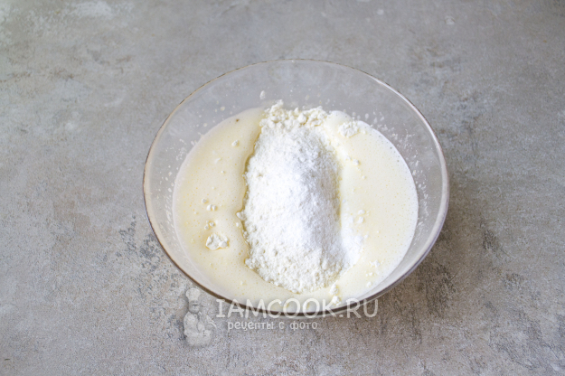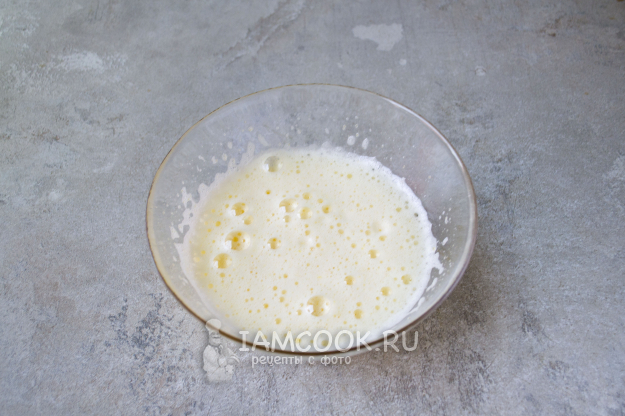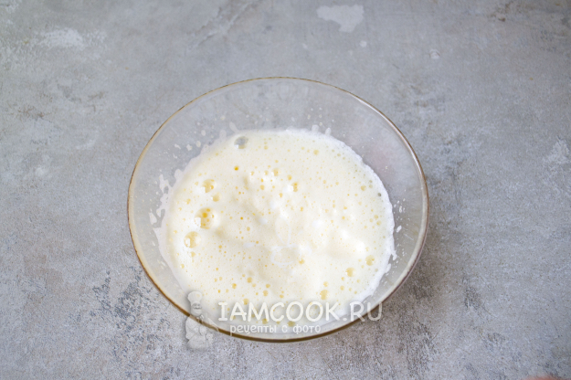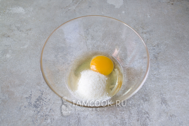 В миску разбейте яйцо, всыпьте сахар, щепотку соли.