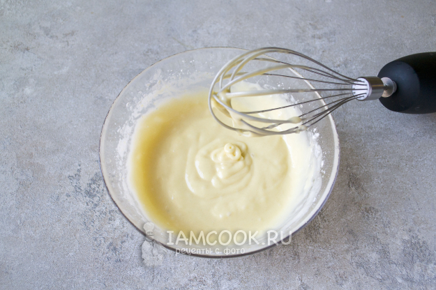 Влейте растительное масло и кефир. Еще раз непродолжительно взбейте миксером.