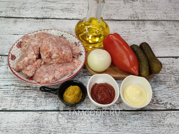 Соберите необходимые ингредиенты для приготовления начинки для пирога "Гамбургер".