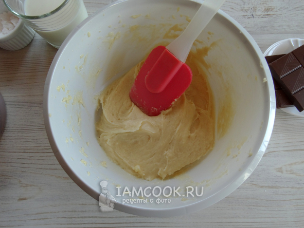 Тесто не стоит сильно долго взбивать. Когда оно станет гладким и однородным, средней густоты - оно готово.