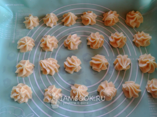 Отсадить тесто на противень с ковриком или бумагой для выпечки.