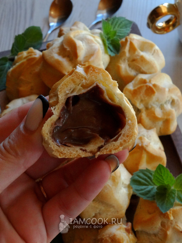 Профитроли с шоколадным кремом надо убрать на пару часов в холодильник.