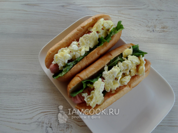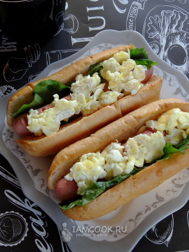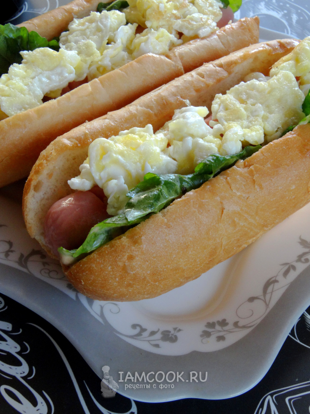 Хот-дог с яйцом и сосиской подавать сразу же.