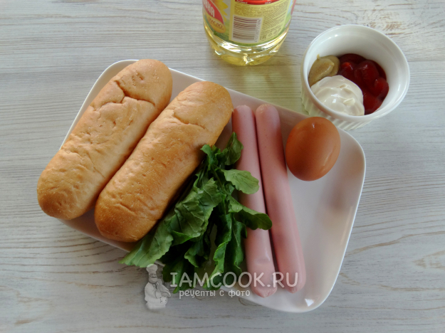 Хот-дог с яйцом и сосиской готовить будем из таких ингредиентов.
