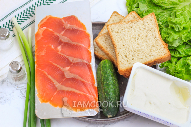 Продукты для приготовления сэндвича с лососем - перед вами!