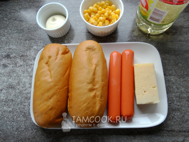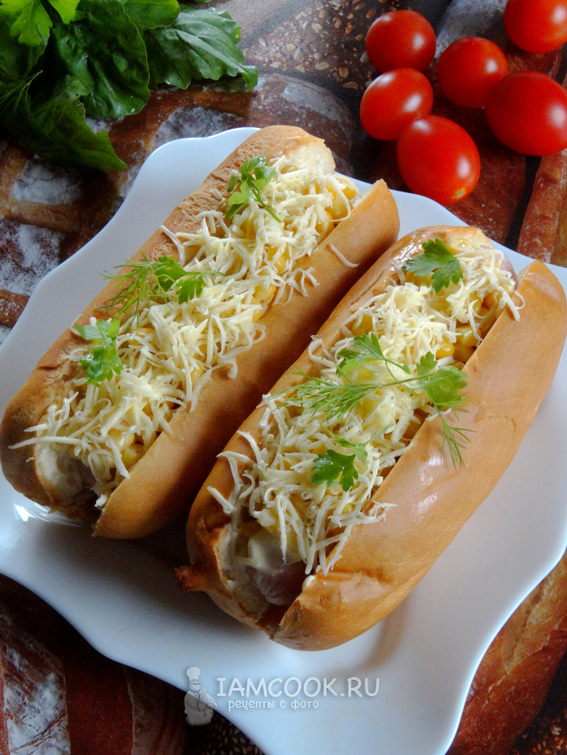 Ещё одна вариация на тему быстрого фастфуда. Зёрна кукурузы придают хот-догу сладость и сочность. Можно подрумянить хот-дог в духовке или прогреть в микроволновке, чтобы сыр расплавился.