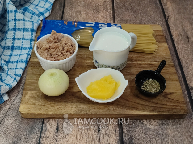 Соберите ингредиенты для приготовления пасты с тунцом и сливками. Пасту можно взять и короткую, у меня просто непреодолимая любовь к спагетти, чаще всего готовлю их. Масло подойдёт и оливковое, и подсолнечное. Специи - на ваше усмотрение).