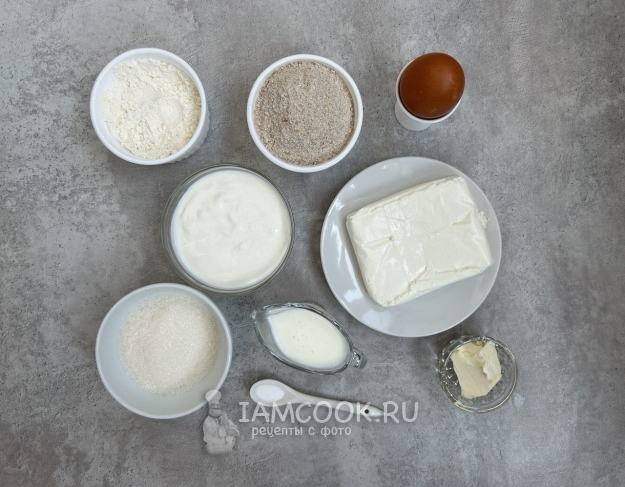 Для приготовления калиток с творогом (из ржаной муки и из пшеничной) соберите необходимые ингредиенты по списку.
