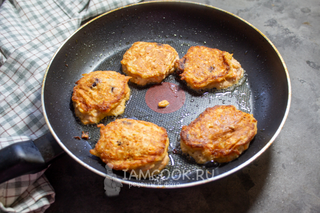 Жарьте оладьи до румяности на сковороде на небольшом количестве масла при умеренном нагреве.