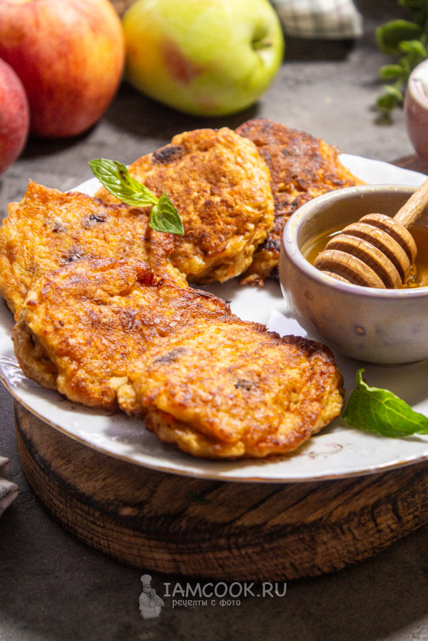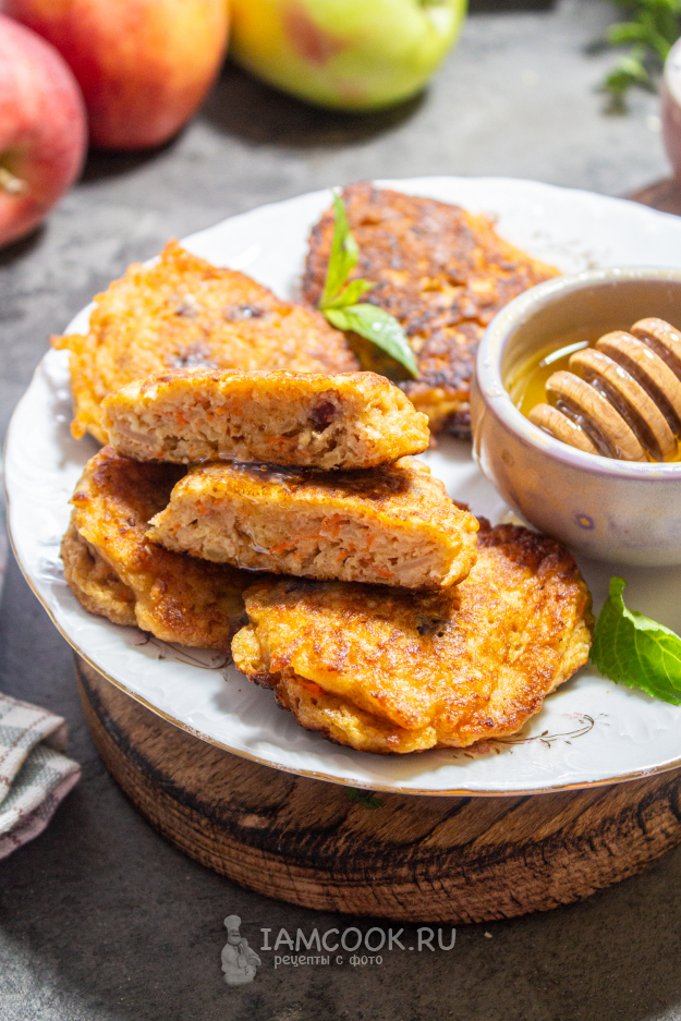 Морковно-яблочные оладьи готовы! Подавайте их с медом и сметаной. Приятного аппетита!!!