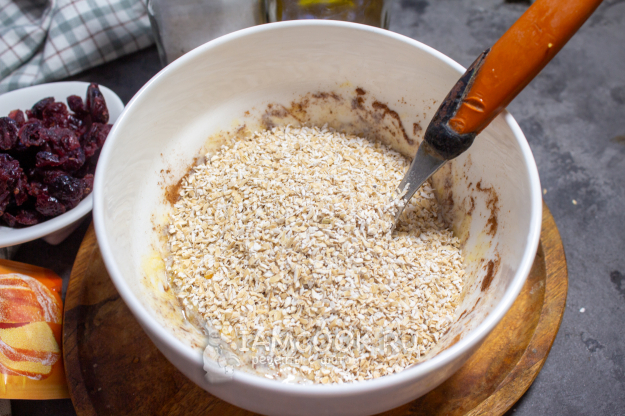 Всыпьте овсяные отруби и перемешайте.