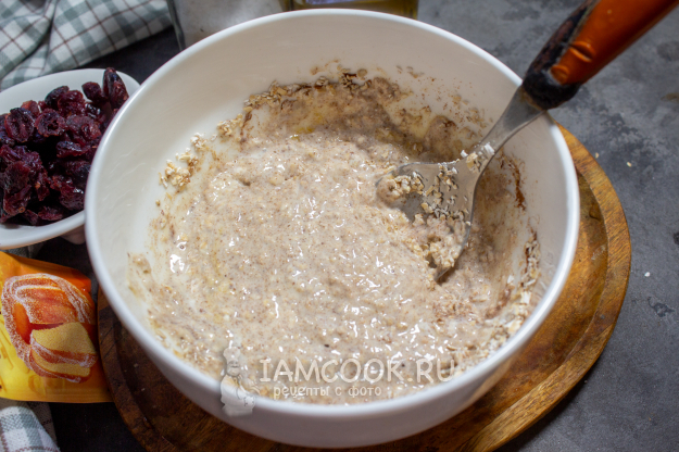 Оставьте массу на минут 10, чтобы отруби немного набухли.