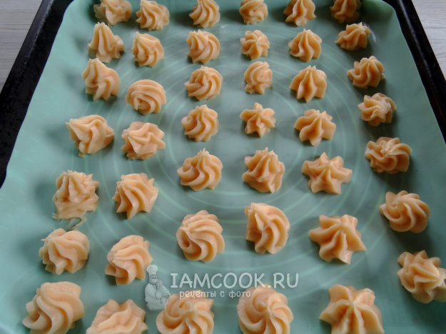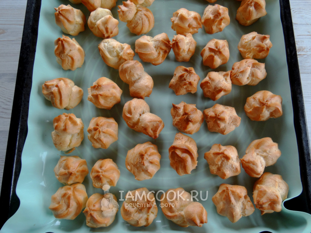 Отсадить на противень небольшие заварнушки (ложкой или кондитерским мешком с насадкой).