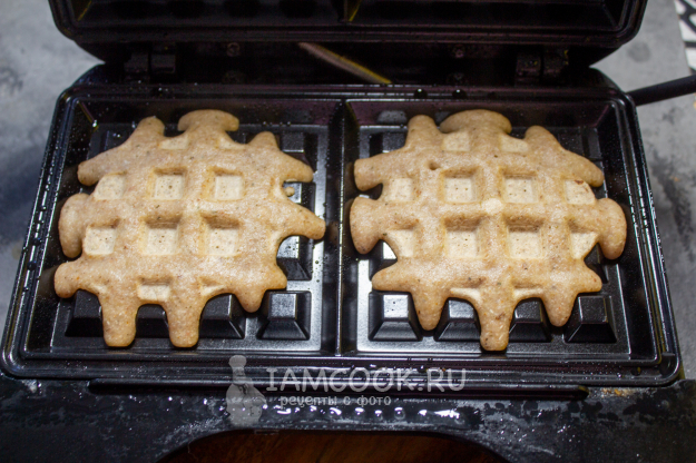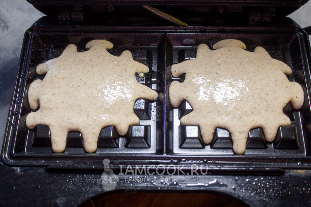 Вафельницу разогрейте, сбрызните растительным маслом. Влейте гречневое тесто и пеките вафли 4-5 минут.