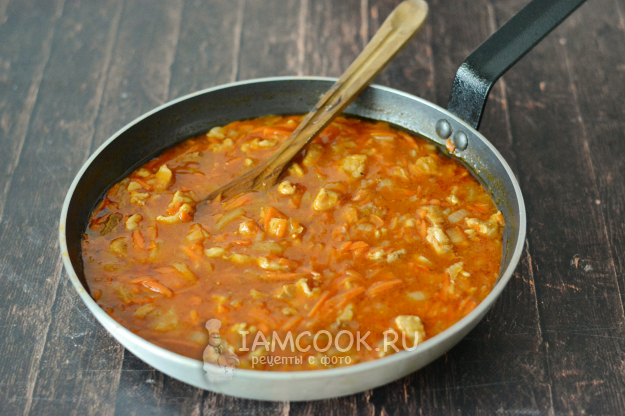 Поскольку в составе кетчупа есть уксус, то в середине приготовления попробуйте соус на вкус, и если вам покажется кисловато, добавьте немного сахара. В конце тушения вы можете загустить соус крахмалом или мукой по желанию.
