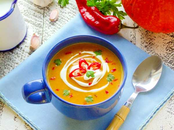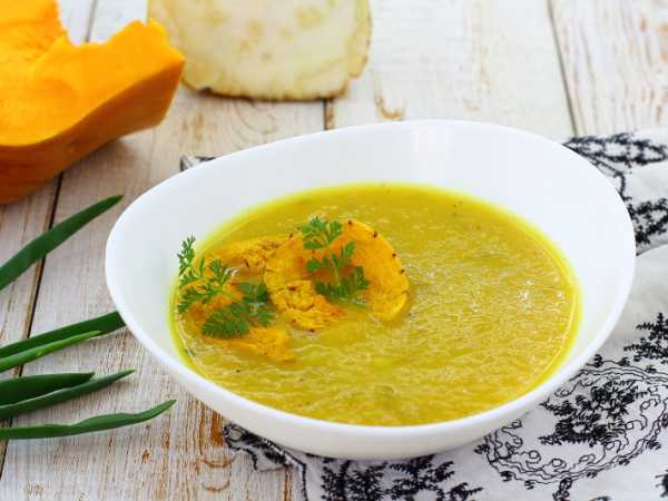 Тыквенный суп с сельдереем готов! Подавайте его с кокосовым молоком. Приятного аппетита!