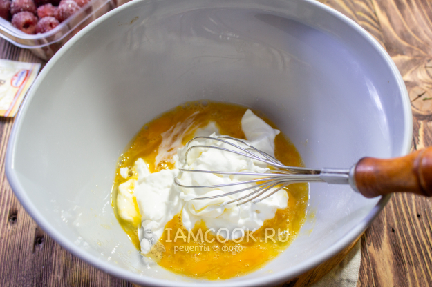К яично-йогуртовой массе добавьте овсяные хлопья и отруби.