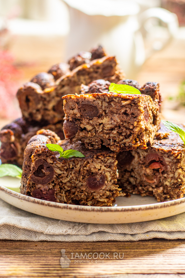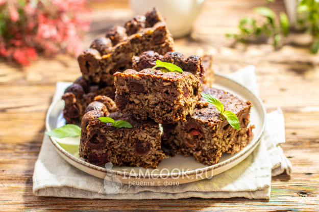 Переложите тесто в форму для выпечки. Выпекайте ПП брауни с вишней в разогретой до 170 градусов духовке 40-45 минут.