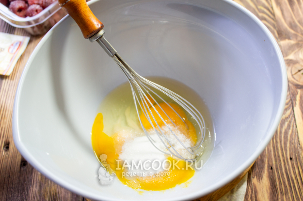 Яйца смешайте венчиком с солью и сахарозаменителем.