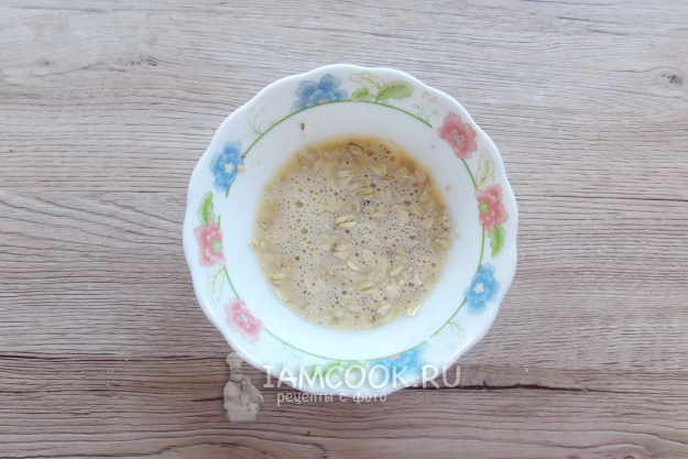 Добавьте овсяные хлопья, перемешайте с яйцом и дайте им немного набухнуть в течение 20-25 минут.