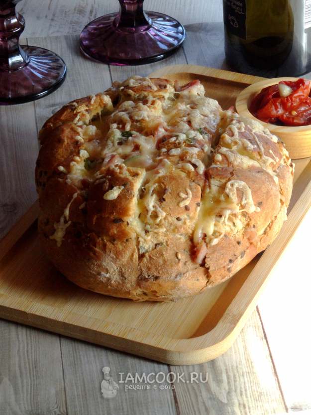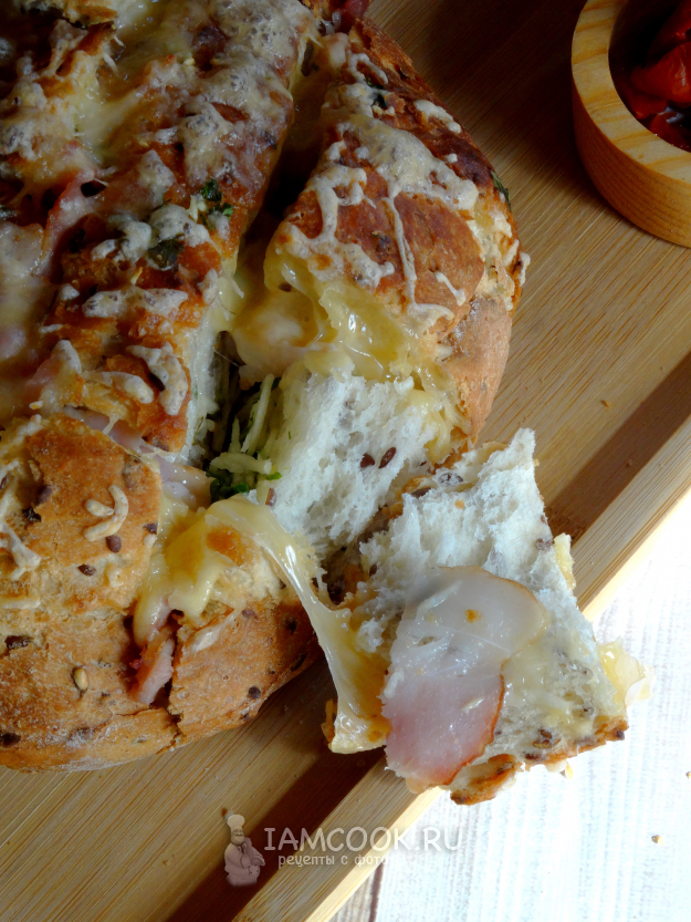 Хлеб с сыром и беконом в духовке готовим из этих ингредиентов.