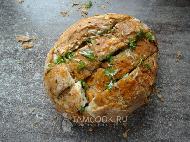 На хлебе до середины сделать разрезы в виде решётки.