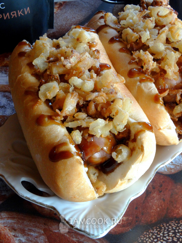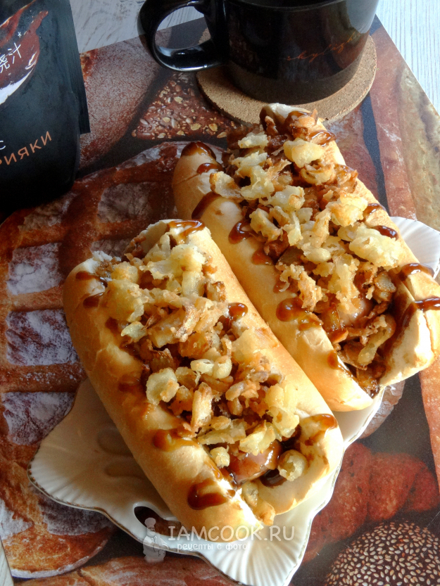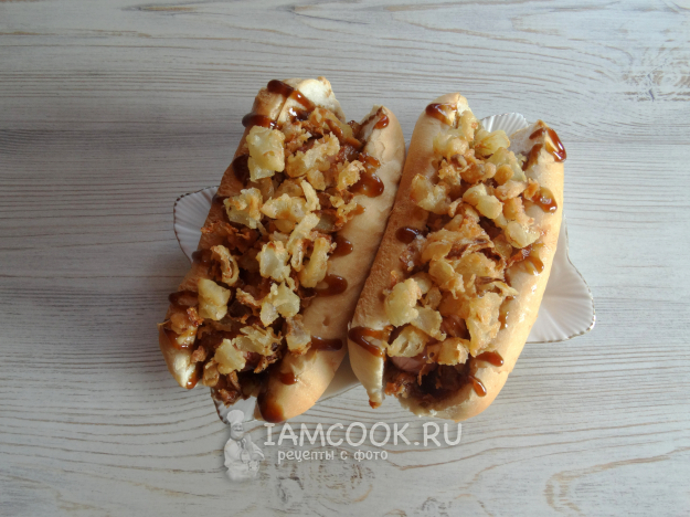Я жарила 2 шт., но на 2 хот-дога достаточно и одной луковицы.