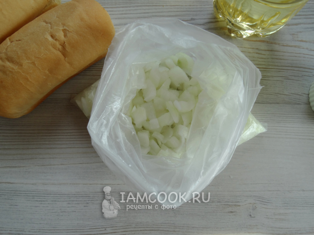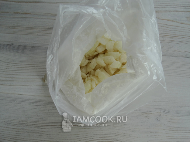 Спустя пару минут посыпать лук мукой и снова хорошенько потрясти пакет.
