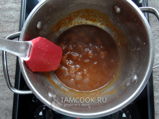 Не мешая, дать сахару полностью растаять и потемнеть.