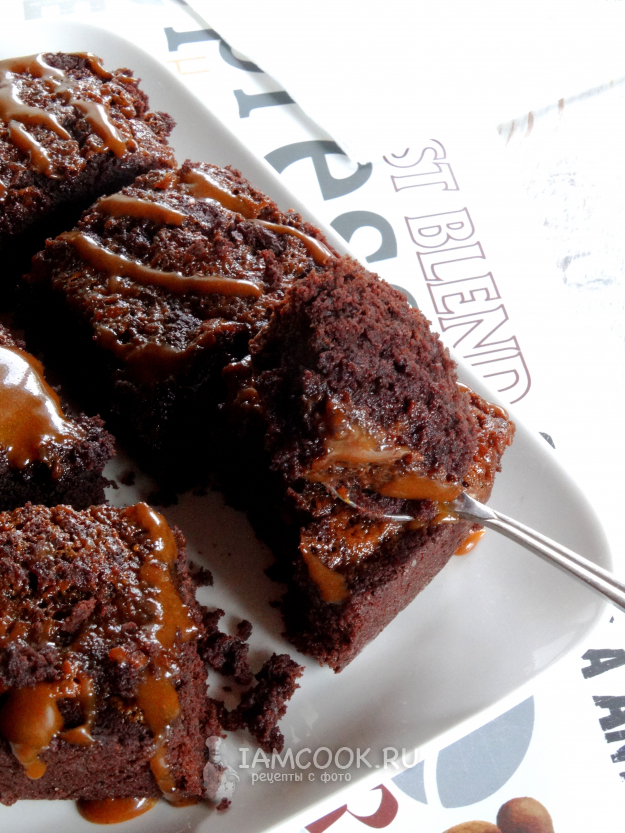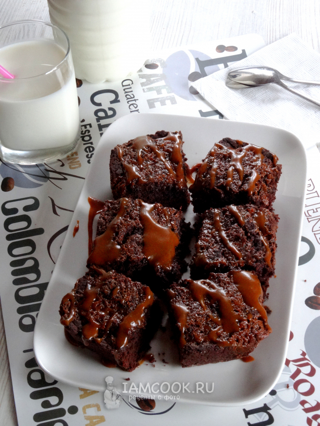 Брауни с соленой карамелью нам вкусен с холодным молоком.