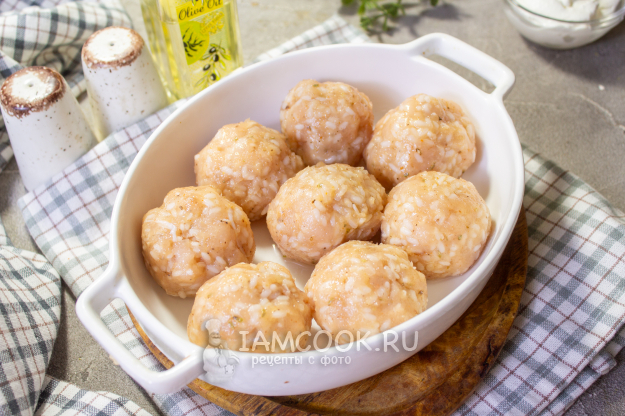 Слегка влажными руками формируйте среднего размера тефтели. Переложите в подходящую форму для выпекания, смазав ее растительным маслом. Поставьте форму с заготовками в разогретую до 180 градусов духовку на 10-15 минут, чтобы они слегка "схватились".