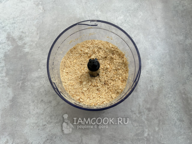 Печенье крекер измельчите в блендере в мелкую крошку.