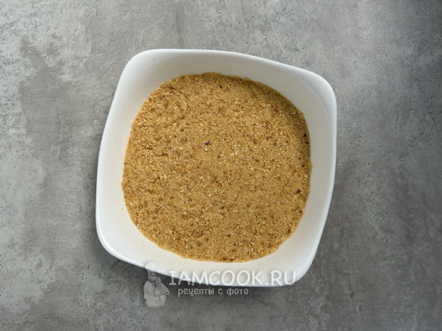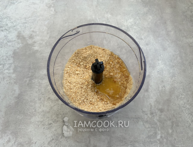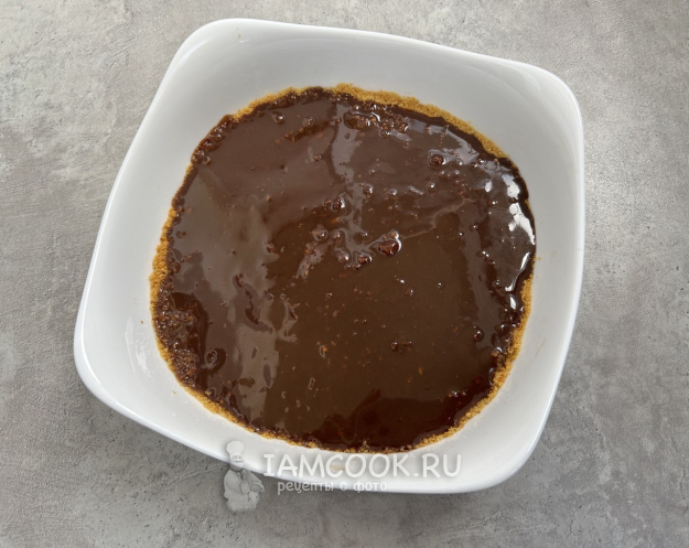 Сливочное масло растопите в микроволновке, займет это примерно 20-30 секунд. Добавьте к перемолотому крекеру и перемешайте.