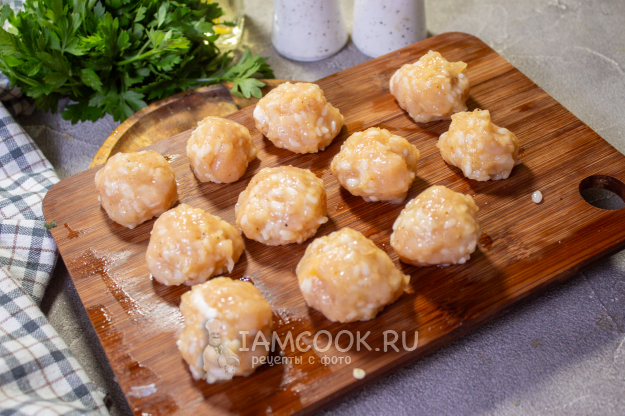 Слегка влажными руками сформируйте небольшие тефтели.