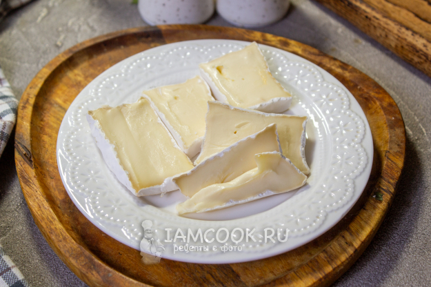 Тем временем нарежьте сыр "Камамбер" на пластины.