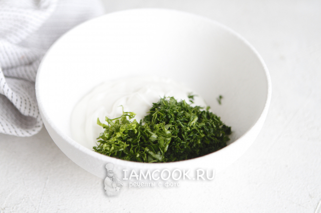 Укроп хорошо промыть и обсушить, мелко нашинковать. Чтобы соус получился более выразительным по вкусу, я добавила еще немного зеленого базилика.