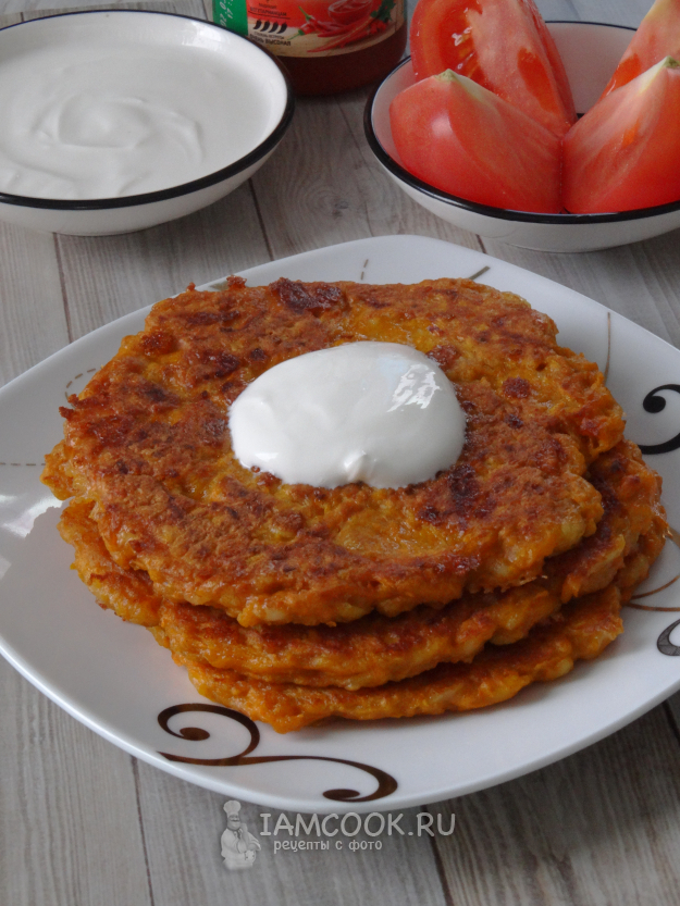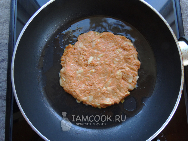 Морковные лепешки на сковороде готовим из таких ингредиентов.
