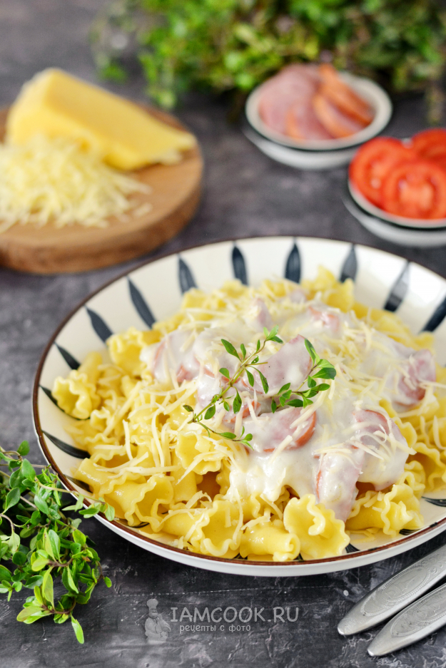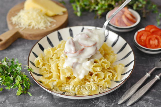 Макароны с колбасой в сливочном соусе получились очень вкусными! Приятного аппетита!