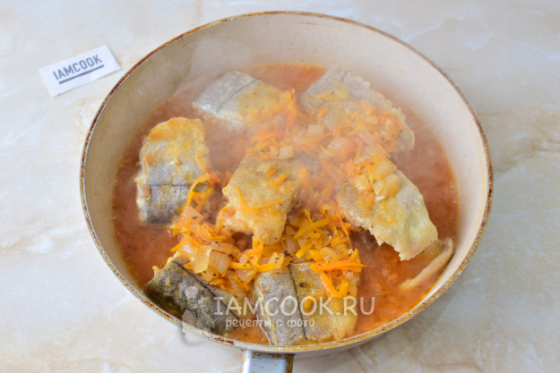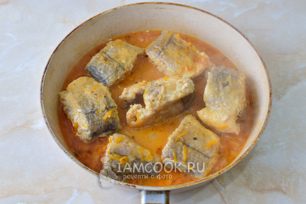 Получившимся маринадом залейте жареную рыбу и готовьте её еще минут 12-15. Обязательно её переверните в процессе приготовления, чтобы она пропиталась более равномерно.